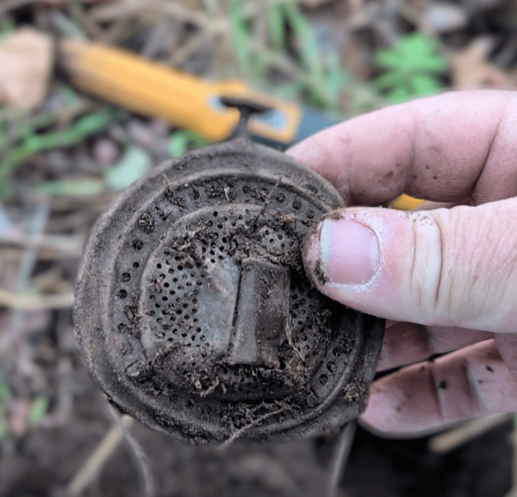 The heirloom ring remained elusive, swallowed by the earth around us. We had been skunked. We had a few pieces of interest, such as an early 1900’s black powder gun striker, still with the flintlock attached.